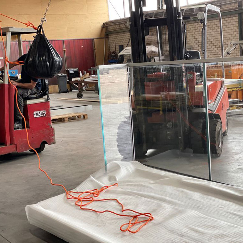 De veiligheid en stevigheid van de glazen balkons, werd getest met een zak zand van 50 kilo. Deze werd, hangend aan een heftruck, met flinke vaart tegen de balkonbeglazing aan geslingerd. Het glas bleef geheel intact, en dat betekent dat de balkons veilig geplaatst kunnen worden in week 40!